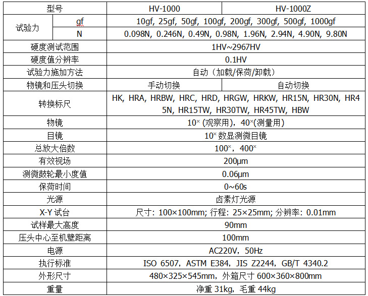 HV-1000 / HV-1000Z數(shù)顯顯微維氏硬度計,在機械、光學(xué)、光源上采用獨特精密設(shè)計,使壓痕成像更清晰,測量更精確。配備數(shù)顯測微目鏡,不用查表,也不用輸入壓痕對角線,在屏幕上能顯示試驗方法、試驗力、壓痕長度、保荷時間、測量次數(shù)、轉(zhuǎn)換標尺,操作時只要測量壓痕按目鏡按鈕,即可自動計算出硬度值并顯示在屏幕上。可選配努氏壓頭進行努氏硬度測量,也可選配LCD視屏測量裝置和CCD圖像自動測量系統(tǒng)。