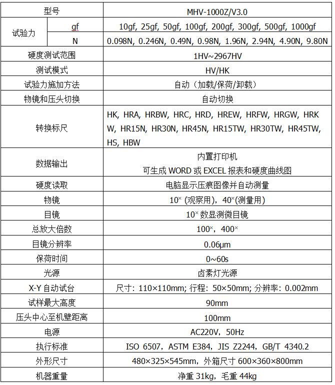 MHV-1000Z/V3.0全自動(dòng)顯微維氏硬度計(jì),集成了光學(xué)成像、機(jī)械位移、電子控制、數(shù)字成像、圖像分析、計(jì)算機(jī)處理等多種專業(yè)新技術(shù),通過計(jì)算機(jī)主機(jī)實(shí)現(xiàn)對(duì)維氏硬度計(jì)和自動(dòng)載物臺(tái)的控制,并將硬度壓痕數(shù)字化成像在計(jì)算機(jī)屏幕上,再通過自動(dòng)讀數(shù)、手動(dòng)讀數(shù)等手段,準(zhǔn)確測(cè)量金屬及部分非金屬材料及各種膜層、鍍層的顯微硬度、硬化層深度、膜層厚度、兩點(diǎn)間距等。還可拍攝金屬表面形貌并進(jìn)行固定倍率打印等。這一系統(tǒng),突破了傳統(tǒng)硬度的測(cè)試方式,實(shí)現(xiàn)了全自動(dòng)、高精度、高重復(fù)性的硬度測(cè)試,是材料分析的重要設(shè)備。